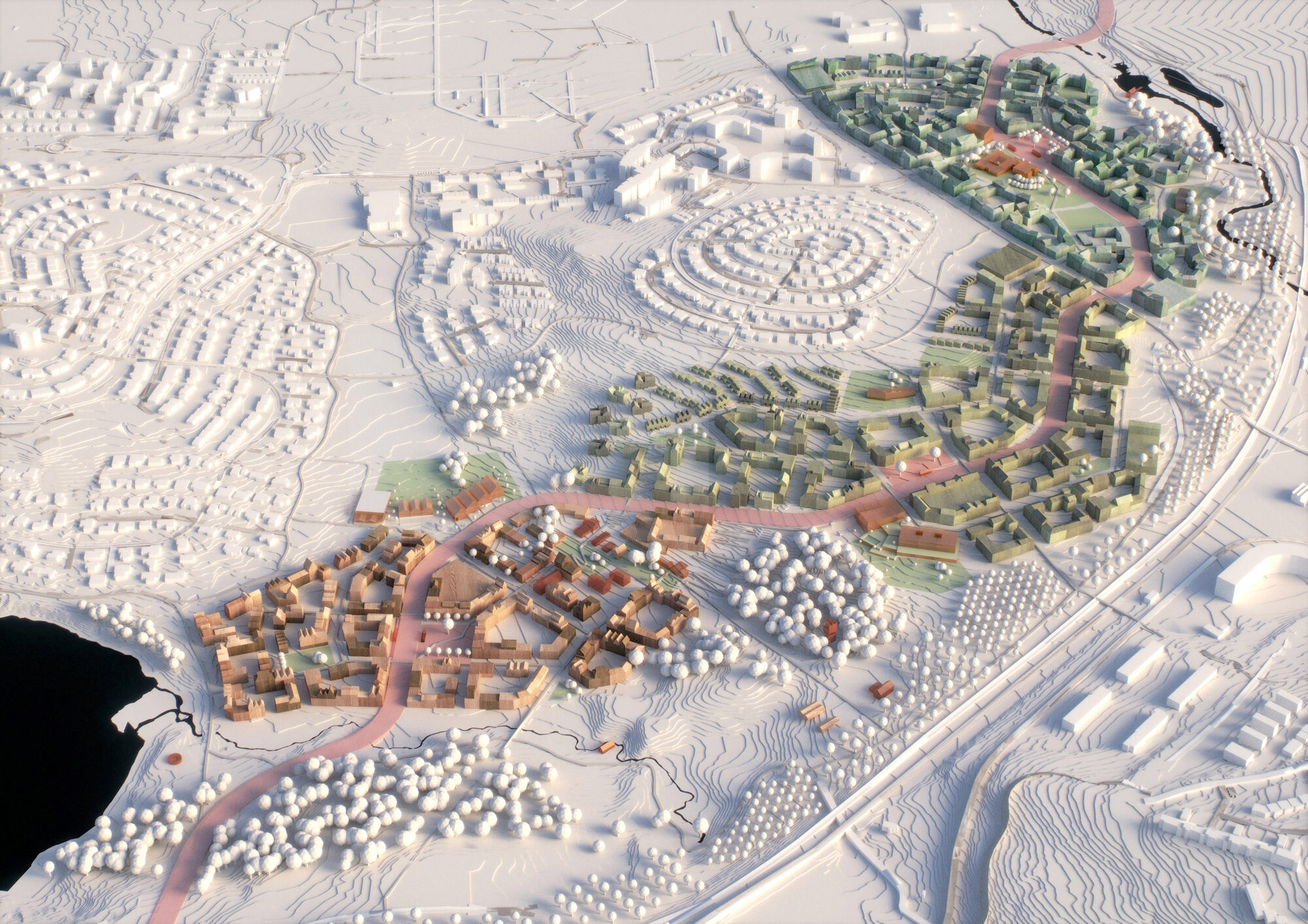 The jury for the competition was particularly attracted by the fact that FOJAB's proposal was clearly rooted in the site and that the conditions of the landscape with greenery and water have been taken advantage of, and that the land is used efficiently. As well as forward-looking ideas about mobility and a flexible block structure. The strategies for achieving a social mix were also considered convincing.