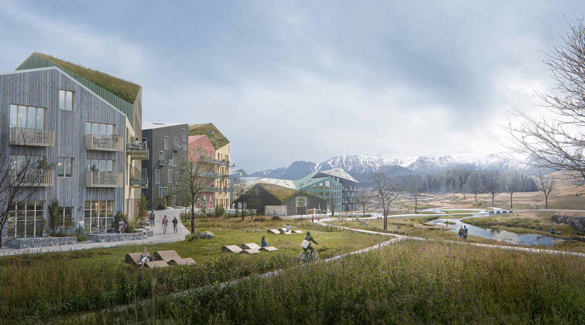 The jury said that FOJAB's proposal responds very well to the needs and requirements of the new urban neighborhood in Reykjavik. An urban district close to nature, where the three stops of the Borgarlín express bus will be the backbone of sustainable urban transportation.
