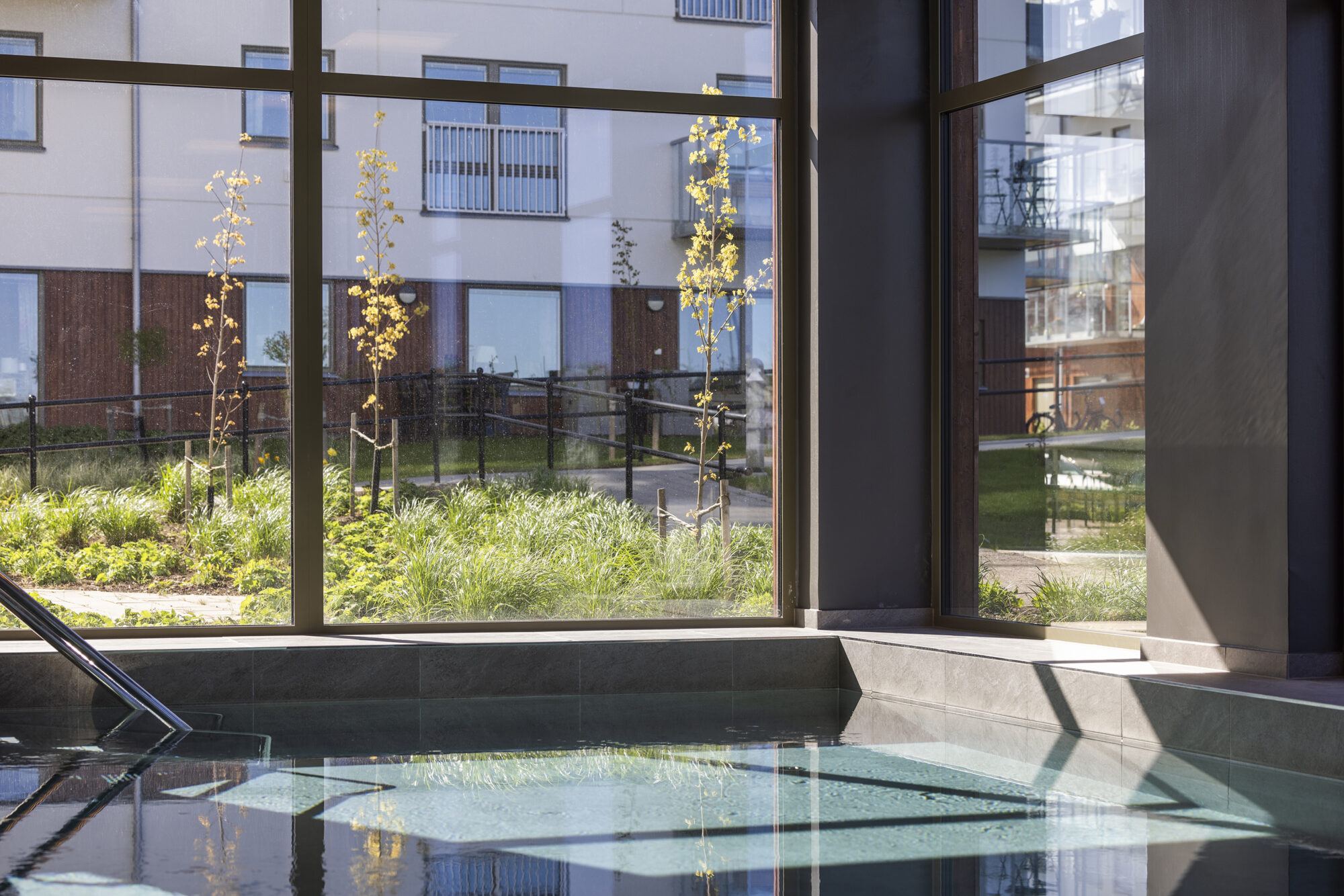 The apartments are intended for the 65+ target group with a strong focus on social interaction. The homes have an increased level of accessibility and many common areas such as a pool, gym and sauna. In the courtyard there is space for both activity and recreation, including a greenhouse.