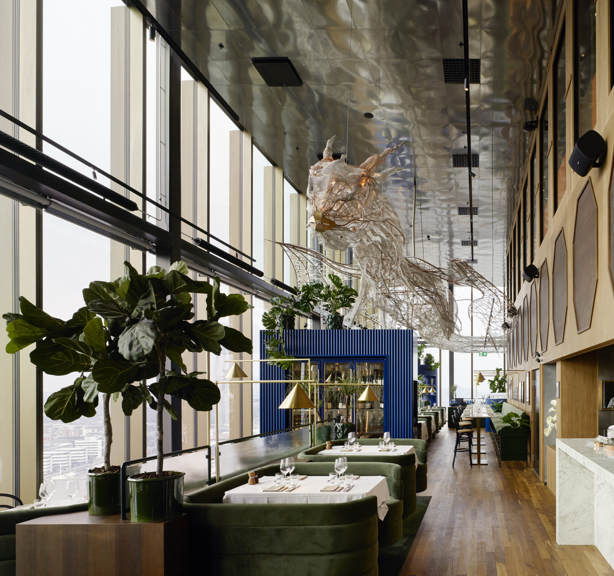 Stora delar av det befintliga kvarterets nedre våningar tas i anspråk av hotellet; här återfinns bland annat hotellreception, lobby, lobbybar, frukostmatsal och bistro. En trappa upp finns en större konferensanläggning som bland annat innefattar biograf Draken. Här finns också hotellets SPA-anläggning. De 474 hotellrummen är inrymda i en 34 våningar hög byggnad på kvarterets innergård. Denna är förbunden med de befintliga byggnaderna via en atriumpassage, som också bildar en invändig förbindelse mellan Järntorget och den nya park som skapas norr om hotellet. Byggnadens tre översta våningar innehåller publika lokaler i form av konferenssalar, brasserie och skybar med tillhörande takterrass. Dessa våningar nås direkt från hotellfoajén via två uppglasade snabbhissar.